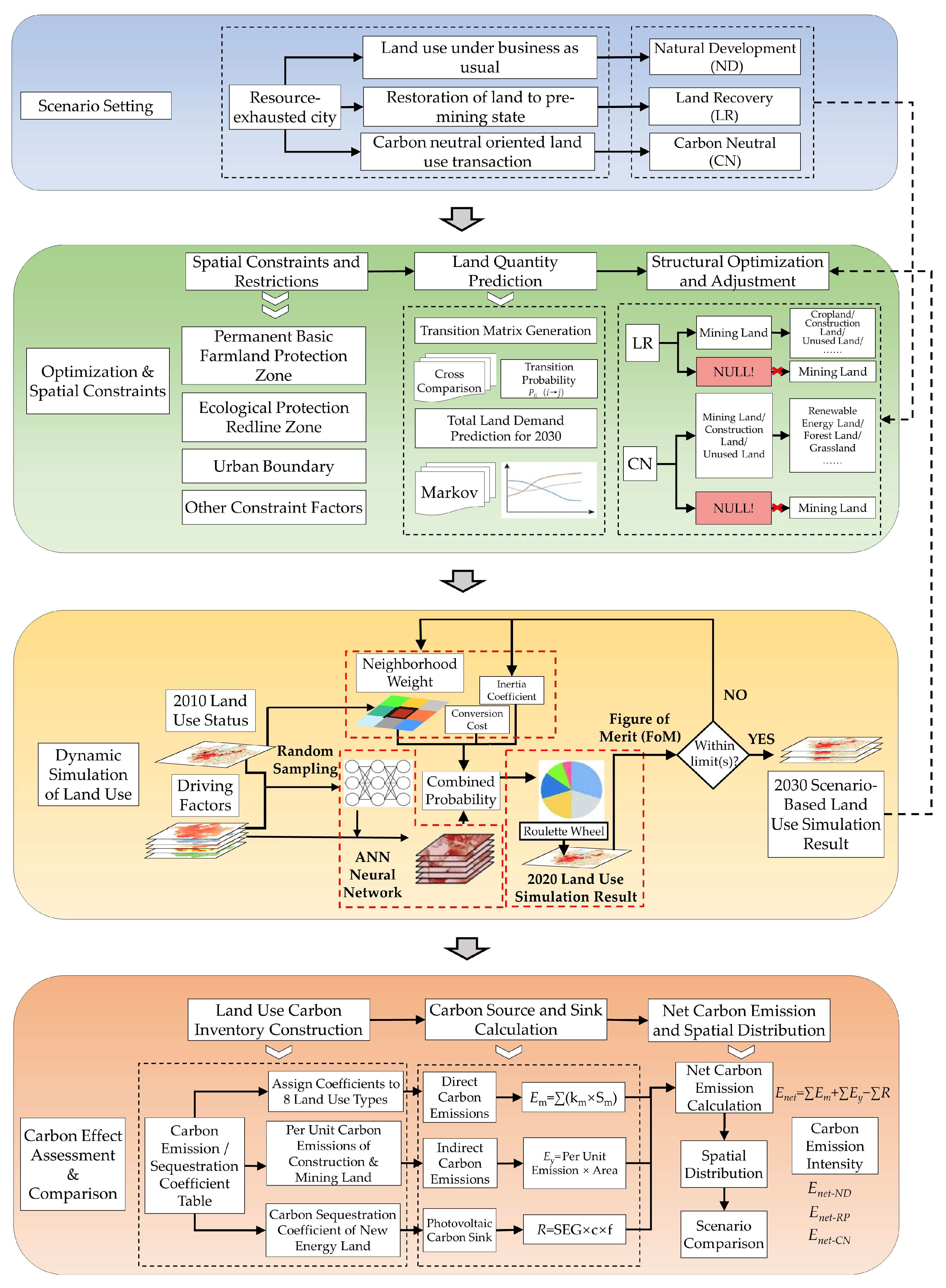 18]. Consequently, integrating carbon-neutral objectives into scenario-based land use simulations become essential for evaluating the long-term sustainability of resource-exhausted cities.