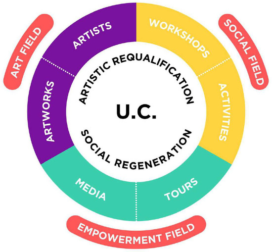 | 6. | The projects supported so far include: Urban Creativity between Redevelopment and Regeneration (2016); Urban Creativity between Redevelopment and Regeneration (2017); Urban Creativity between Redevelopment and Regeneration (2018); Urban Creativity for Social Change: Youth for Territory and Community (2019); Let’s get it ST.ARTed (2020); Park Factory—Rethinking Spaces for Youth Aggregation and Creativity (2021); and Draw on the Wall—Draw on the Walls (2022); PartecipARTE (2023). So far, seven Universal Civil Service projects focused on urban creativity for social purposes have been supported. |