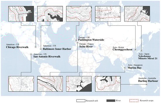 This study primarily focuses on world-renowned waterfront space cases. Considering that the development of waterfront spaces is closely related to social and economic development factors, the selected cases exclude urban edge spaces and intercontinental regions with relatively underdeveloped economies and slow waterfront space development. The selection was based on the following screening criteria and process: