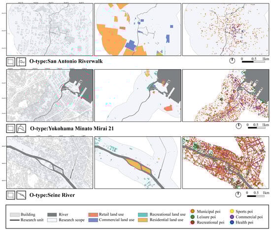 Although OSM data are highly valuable for large-scale urban analysis, inherent accuracy, and data structure limitations exist. These limitations include boundary completeness and categorical inconsistencies. The maps of Chicago Riverwalk, Marina Bay, Paddington Waterside, Cheonggyecheon, San Antonio Riverwalk, Baltimore Inner Harbor, and Darling Harbour had high completeness. However, the Yokohama Minato Mirai map lacked complete data for residential land use, while the Seine River map showed incomplete data for residential, retail, and commercial land use.