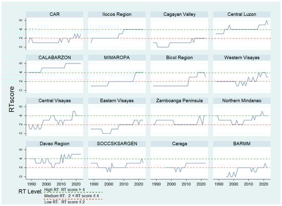 Rural transformation level of the regions, Philippines, 1988–2023. Source of basic data: PSA [1].