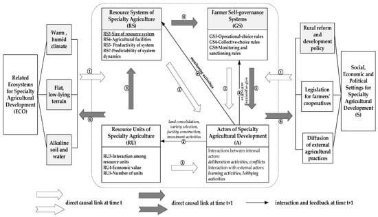 Supplementary Table S1), we developed an key variable inventory for each stage of the specialty agriculture development to analyze connections between specific variables. Importantly, our extension of SESF is focusing on the dynamic nature of the specialty agriculture SESs (see