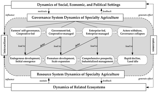 23]). Equally important, however, if not more, is the need of understanding why some cases failed. Additionally, the existing studies seem satisfied with their oversimplification of a dichotomy of stereotypes, namely, the top-down, government-led model versus the bottom-up, farmer-led model. The fact is that the governance subsystem itself often evolved over time along with the development of specialty agriculture. In other words, further needed is a dynamic instead of static perspective on the roles of the governance subsystem (and land resource subsystem) in the rise and fall and China’s specialty agriculture.