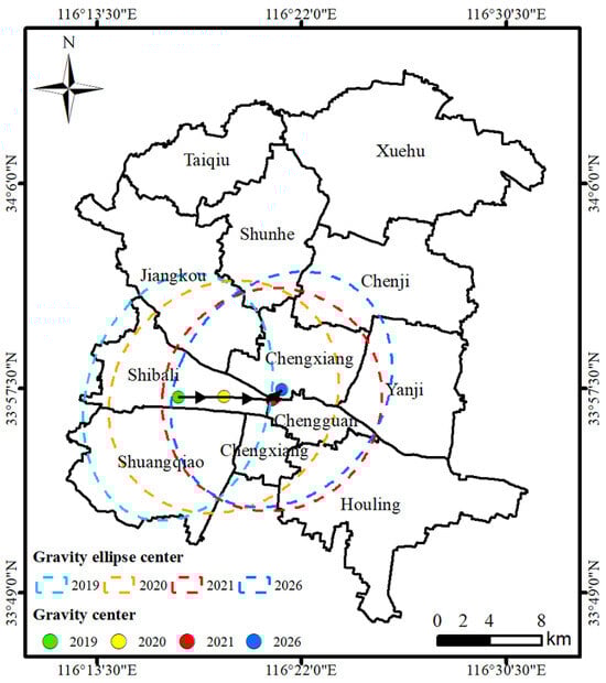 where  are the mean coordinates of the center of gravity of the study object;  is the number of subsidence units;  is weighted by the subsidence area in different years; and  and  are the geometric coordinates of the center of gravity of the study object.