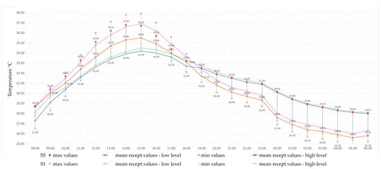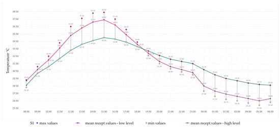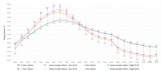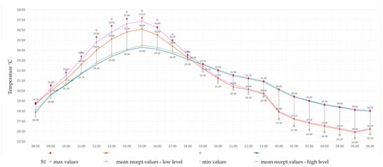 Thermal daily fluctuation of all receptors at two levels—existing situation—Scenario 1.