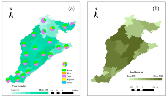 Water and land footprint matching in the NCP over the last ten years: water footprint (a); land footprint (b).
