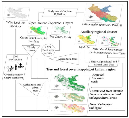Flow chart for tree and forest cover mapping of the Latium region.