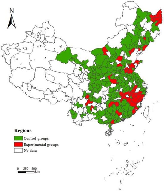 The core explanatory variable is specified as implementation of the NKEFA, i.e., the post-2016 policy implementation area. We set up time and between-group dummy variables to measure it and the results are expressed as the product term of the two. The policy examined in this paper was initiated in 2016. Therefore, on the time dummy variable, 2016 and later are assigned a value of 1, and before that a value of 0. On the between-groups dummy variable, cities with NKEFA are assigned a value of 1, and otherwise a value of 0.