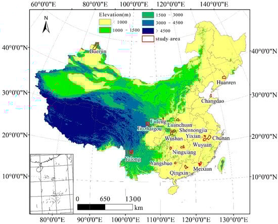 To assess the impervious area expansion in the highlands, we also acquired elevation (DEM) data with a spatial resolution of 30 m from the Geospatial Data Cloud platform (https://www.gscloud.cn/, accessed on 3 October 2023). According to Yang et al. (2022), highlands include hills (elevation 0~1000 m with slope > 15°, or elevation 1000~1200 m with slope > 8° or elevation 1200~1500 m with slope 0~3°) and mountains (elevation 1200~1500 m with slope > 3° or elevation > 1500 m) [29].