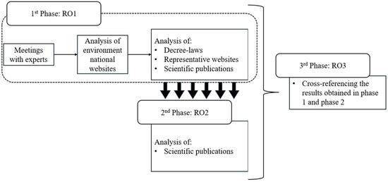 The objective of this work is to understand which regulatory measures may foster circularity in the agroforestry leftovers domain. This study was carried out in the Portuguese context, where it is possible to find some regulatory measures that foster waste recovery, in different contexts. The first phase of the study consisted of the understanding of actual waste recovery systems, which promote the CE, and are already implemented in Portugal (RO1). The benchmarking technique was chosen to fill this need, a methodology that is very valuable for comparing solutions, as seen in some works of literature [22]. In this study, benchmarking was not used to compare, but to collect highlights about other chains functioning. Using the methodological approach, the need was to perceive which are the main waste recovery chains that will be studied. A meeting with practitioners with some experience in these fields (waste recovery) was performed and a list of waste recovery chains was defined (visible in the results section). To complement this, the Portuguese Environment Association webpage was analyzed to validate the previous list. This benchmarking was carried out using the analysis of Decrees-Law, an analysis of information available in digital platforms from entities responsible for ensuring environmental principles and circular economy and from companies that collect, pay, and value waste. To complete this, an explorative literature review was conducted, where the specific terminology, about waste recovery chains identified in the previous phase of the study, was researched in the Scopus and Google Scholar databases. The abstracts of the results were analyzed if the abstract was relevant, it led to the paper being analyzed in detail.