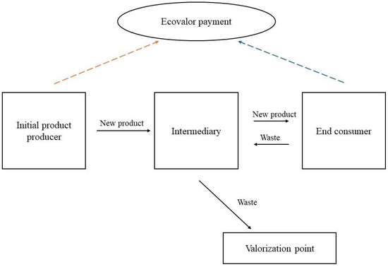 The concept of sustainability presupposes a balance between three dimensions: the economic, environmental, and social components. The first factor corresponds to the guarantee of monetary profitability over time. The second pillar supposes keeping the basic characteristics of ecosystems and their interactions. The social sustainability factor aims to guarantee ethical and cultural values among citizens [1]. Associated with the concept of sustainability is the concept of circular economy (CE), which presupposes a change from the take–make–waste economy to a new approach, where product wastes have a new life after their expected end [2]. This concept, in addition to all the changes it requires in terms of manufacturing, such as changing processes, is also closely linked to the creation of additional value chains at the end of the products’ life and, for this reason, often the CE is linked to another concept, waste management [3]. The concept of circular economy could be understood as the consideration of materials in a connected loop to reduce pollution and resource consumption [4,5,6], being possible to find in the literature examples, such as bivalve industry [7]. Insights from similar global studies (e.g., Liu et al., 2024 [8]; Pradhan et al., 2024 [9]) underline the relevance of such measures for advancing sustainability. With the growing pressure for a greater need for products, there is also a greater production of waste that requires countries to take measures to manage this waste production, which can have various natures such as the payment of variable fees, depending on the amount of waste generated, or the obligation to deliver certain waste to certain competent entities [10]. The financing models of residual recovery chain are varied, from fees to producers or to final consumers, or even, managing waste as if it were a raw material [11,12,13].