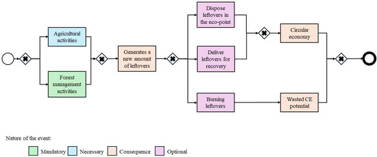 One relevant aspect highlighted by benchmarking is the mandatory nature of collections imposed by these laws (Decree-Law No. 267/2009 and 152-D/2017) to ensure recovery chain functioning. Therefore, the first measure that will be discussed will be the mandatory delivery of leftovers. In other words, the producer/landowner, when s/he has a load of leftovers, must have a declaration confirming that s/he has delivered the leftovers load to a responsible entity (final consumer). The inspection by entities that already carry out inspections on land, such as foresters who appear as fundamental players to ensure this obligation. The integration of drones and artificial intelligence (AI) into agroforestry waste management can significantly enhance monitoring and compliance. Drones can be used for real-time inspections, mapping, and data collection, while AI tools can analyze large datasets to identify patterns, optimize routes, and predict potential issues. These technologies improve efficiency, reduce operational costs, and ensure adherence to regulatory measures, particularly in remote or hard-to-access areas. Other systems such as Geographical Information Systems (GIS) may also be used to facilitate the identification of properties. These technologies may be integrated with BUPi (“Balcão Único do Prédio”, which can be translated as “One-Stop Property Desk”), a digital platform designed to facilitate land registration and property regularization [45], which refers to a Portuguese obligation, where landowners must register their properties, facilitating landowner identification processes. However, the leftovers do not only come from forest “cleaning” operations; they are a significant part of agricultural activities, such as pruning. In these leftovers, when producers sell the products, it should be mandatory to present the leftovers’ delivery declarations. In the case of producers for leftover consumption, who do not sell anything, such as micro-producers, they often have fireplaces and use these leftovers there and therefore they are not included in this model.