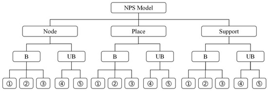 As depicted in Figure 3, the original NP model categorizes the state of Balance (B) into three substates: ① Stress, ② Balance, and ③ Dependence. Conversely, the category of Unbalance (UB) encompasses two substates: ④ Unbalanced node and ⑤ Unbalanced Place. Building upon this classification framework, the NPS model constructed in this study defines the subcategory classification method as shown in Figure 4, which comprises a total of 125 subcategories. These types represent the specific developmental aspects of the research subject along particular dimensions.