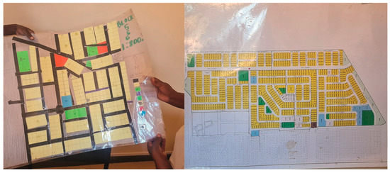 As things proceeded, the inhabitants moved into their re-blocked plots and provided physical labor to excavate trenches for service line installation. At this point, the Ministry of Land Reform (MLR) equipped the inhabitants with training and informed them about their tenure security options to implement the FLTA. The inhabitants were also assisted in forming management committees for each administrative block. A final survey by the government provided the updated land occupancy data, and afterwards, the inhabitants were handed over the certificates of tenure and a photocopy of the land deed in early 2021. Figure 5 presents photos of the Freedom Square settlement during the time of this research in April 2024.