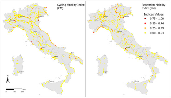 In recent decades, growing awareness of the need to protect the environment and reduce pollution has led to increased attention toward sustainable mobility policies, including the development of increasingly extensive cycling networks and greenways interconnected with other modes of transport [28]. Alongside local routes designed primarily to reduce traffic congestion and pollution, more ambitious projects have emerged, aimed at promoting cycle tourism and enhancing cultural and landscape heritage [29]. In 1996, the European Cyclists’ Federation (ECF) launched the Eurovelo project, aiming to create a European cycling network encompassing 17 routes spanning a total of 90,000 km, of which 50% has been completed to date [30]. In Italy, since 1998, the Associazione Italiana Greenways has been advocating for the development of greenways, particularly through the repurposing of abandoned railways. To date, just over 1000 km of former railway tracks have been converted for soft mobility, out of more than 7000 km of abandoned rail corridors [29]. In 2000, the Italian Federation Environment and Bicycle (Federazione Italiana Ambiente e Bicicletta—FIAB) launched the Bicitalia project to create a national cycling network connecting all Italian regions, consisting of 20 routes with a total length of 18,000 km [31]. Between 2016 and 2017, the Ministry of Infrastructure and Transport (MIT) and the Ministry of Culture (MIC) initiated the National Tourist Cycling Network System, comprising 10 routes covering 6000 km. The objective was to offer high-quality sustainable tourism routes traversing the entire peninsula while showcasing Italy’s cultural, landscape, and environmental assets [32]. The Extraordinary Tourism Mobility Plan 2017–2022, developed by the Ministry of Infrastructure and Transport, sought to enhance the accessibility of tourist sites through safe and enjoyable cycling routes integrated with other transportation modes [33]. Lastly, in 2022, the Ministry of Infrastructure and Transport approved the General Plan for Cycling Mobility, a medium-term strategic document aimed at promoting and developing cycling mobility across Italy. This plan envisions the creation of a National Cycling Network integrated with public transport and regional and local networks [34].