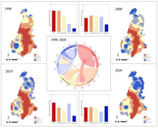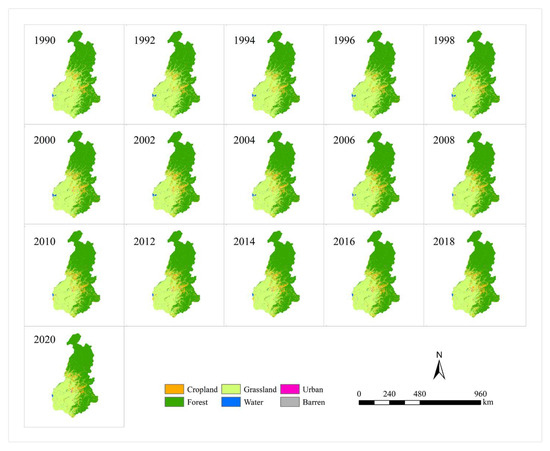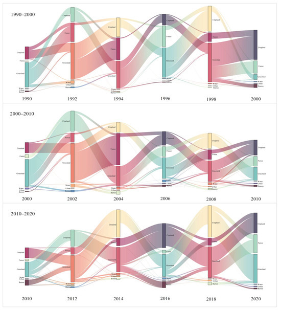 3.1. Landscape Type Transformation in the Study Area from 1990 to 2020