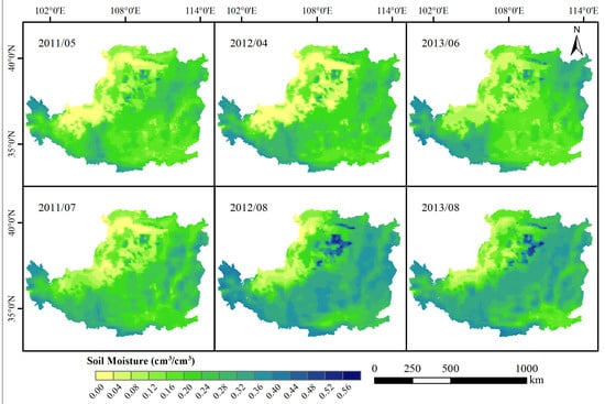 3.3. Spatial Distribution of Downscaled Soil Moisture