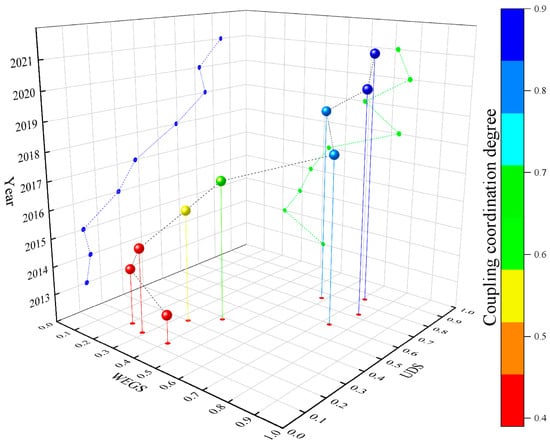 Coupling relationship between UDS and WEGS in Cheng-Yu region from 2013 to 2021.