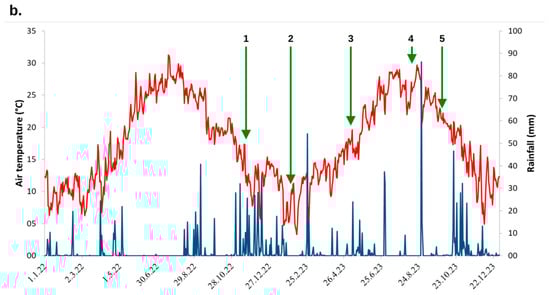 - Shtai, W.; Asensio, D.; Kadison, A.E.; Schwarz, M.; Raifer, B.; Andreotti, C.; Hammerle, A.; Zanotelli, D.; Haas, F.; Niedrist, G.; et al. Soil water availability modulates the response of grapevine leaf gas exchange and PSII traits to a simulated heat wave. Plant Soil 2024, 501, 537–554. [Google Scholar] [CrossRef]