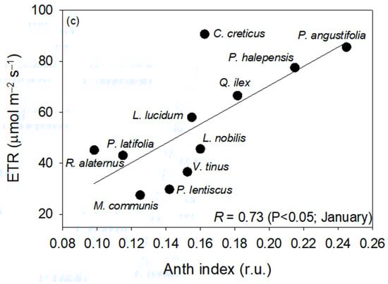 - Catoni, R.; Gratani, L.; Varone, L. Physiological, morphological and anatomical trait variations between winter and summer leaves of Cistus species. Flora 2012, 207, 442–449. [Google Scholar] [CrossRef]