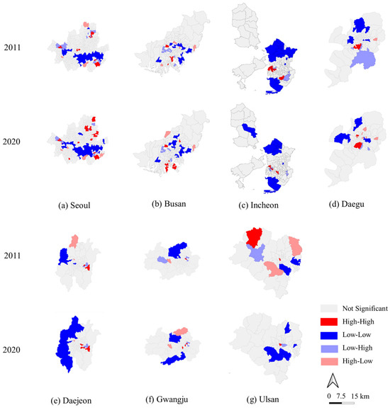Figure 2. LISA analysis for seven metropolitan cities.