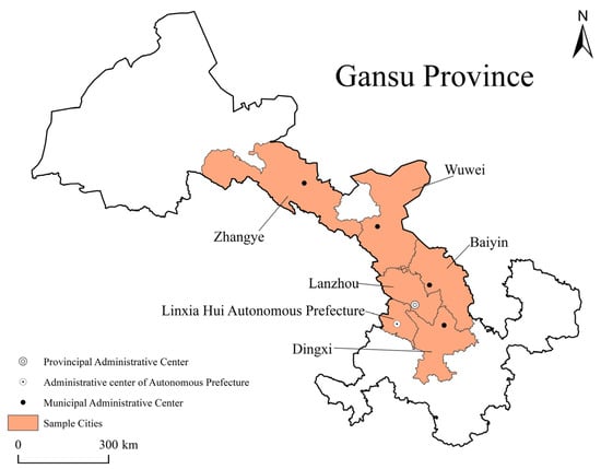 The province’s 14 cities (prefectures) were categorized into three tiers based on their GDP rankings in 2023 to account for the economic disparities across the different regions of Gansu. Cities ranked first to fifth were classified as high-economic-level regions, sixth to ninth as medium-economic-level regions, and tenth to fourteenth as low-economic-level regions. Two cities were randomly selected from each tier, resulting in Lanzhou and Baiyin being selected from high-economic regions, Zhangye and Wuwei from medium-economic regions, and Dingxi and Linxia Hui Autonomous Prefecture from low-economic regions (see Figure 1).