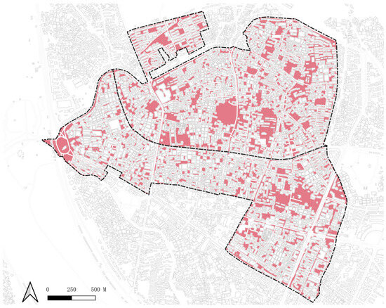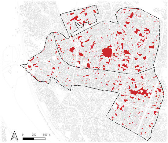 In the study of urban flooding vulnerability in heritage cities, HULs emerge as a paramount concern, encompassing National and Provincial Cultural Relics and Historic Edifices that are repositories of cultural heritage. These assets, quantified by the number of national cultural relics, provincial cultural relics, and historic buildings, are sourced from the Quanzhou Municipal People’s Government (2024) (Retrieved from https://www.quanzhou.gov.cn/lyb/lswh/zdww/index_1.htm (accessed on 23 November 2023)). They not only contribute to the socio-cultural fabric of this place but also to the socio-economic vitality of Quanzhou. Their susceptibility to damage is heightened during urban flooding events, which could lead to the irrevocable loss of heritage and cultural identity.