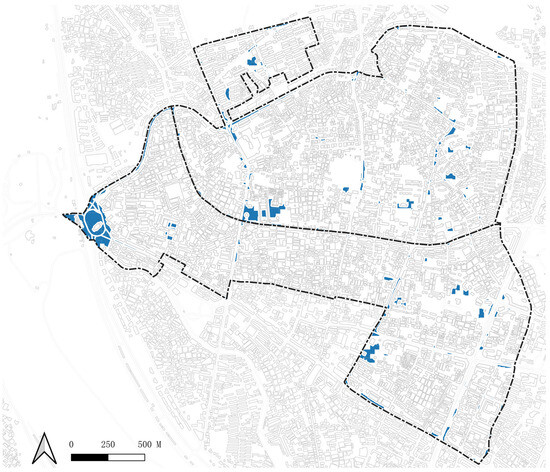 Geographically situated just north of the Tropic of Cancer, Quanzhou experiences a humid subtropical climate, with an annual rainfall of approximately 1000 mm. Rainfall patterns in Quanzhou are largely influenced by the East Asian monsoon. The focus of this study is the central urban areas of Quanzhou, as depicted in Figure 2. This encompasses the 17 townships in the districts of Licheng and Fengze, collectively housing a population of over 1.1 million. These districts, known for their varied urban structure and socio-economic diversity, have historically faced challenges related to urban water management, including periodic urban flooding. Quanzhou’s susceptibility to urban flooding is intensified by a combination of rapid urbanization, geological factors, and climatic changes. In response, local governance has recognized the urgent necessity to address the increasing risks of urban flooding, especially those HULs areas with outstanding historical value located in the central urban areas, leading to the exploration and implementation of innovative, sustainable solutions, including the adoption of NbSs.