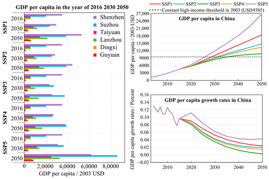 - Jiang, T.; Zhao, J.; Cao, L.; Wang, Y.; Su, B.; Jing, C.; Wang, R.; Gao, C. Projection of national and provincial economy under the shared socioeconomic pathways in China. Clim. Change Res. 2018, 14, 50–58. [Google Scholar] [CrossRef]