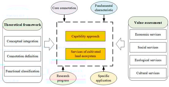 As a semi-natural, semi-artificial ecosystem with complex resource utilization, diverse functions, and dynamic development, the study of cultivated land ecosystems intersects with multiple disciplines, such as management, economics, and geographic science. With the advancement of ecological civilization, there is an urgent need to explore the coupling relationship between cultivated land ecosystem services and human well-being in depth. This paper attempts to introduce Sen’s capability approach to comprehensively analyze and evaluate the value of cultivated land ecosystem services, which is significant for optimizing and achieving sustainable development of cultivated land ecosystems in the future. On the basis of sorting out the research context of cultivated land ecological protection, this chapter follows the current realistic needs of high-quality development of agriculture and rural revitalization, incorporates the characteristics of cultivated land ecosystems, and constructs a theoretical framework for the assessment of cultivated land ecosystem service value under the perspective of capability approach in terms of conceptual integration, connotation definition, and functional classification.