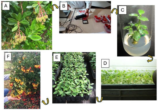 - Gomes, F.; Simões, M.; Lopes, M.L.; Canhoto, J.M. Effect of Plant Growth Regulators and Genotype on the Micropropagation of Adult Trees of Arbutus unedo L. (Strawberry Tree). New Biotechnol. 2010, 27, 882–892. [Google Scholar] [CrossRef] [PubMed]