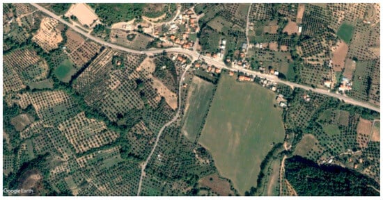Similarly, in the case of the Gavrolimni junction, the improvement of the side road network achieved in the old National Road of Rio-Agrinio in the Chania area resulted in less arable land (Figure 8 and Figure 9):