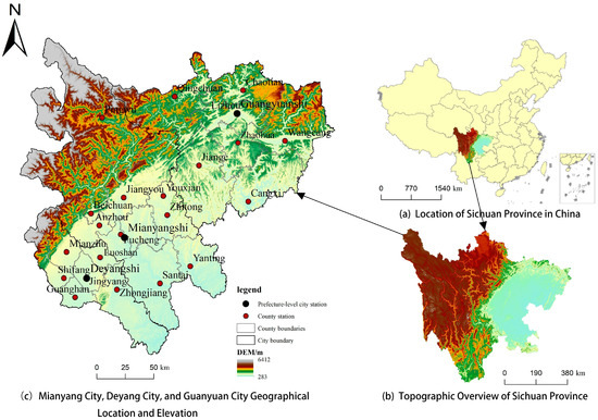 Location and topography of Mianyang, Deyang, and Guangyuan in the Wenchuan earthquake-affected areas.