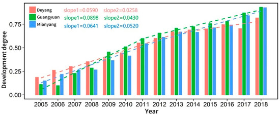 Development degree of Mianyang, Deyang, and Guangyuan cities.