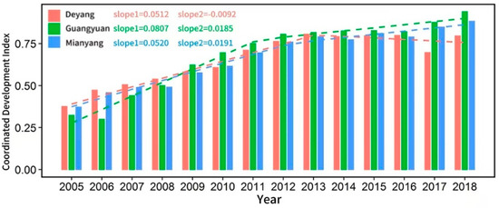 Coordinated Development Index of Mianyang, Deyang, and Guangyuan cities.