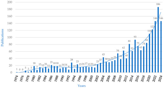 Trends in publications on desertification research from the period from 1974 to 2024.