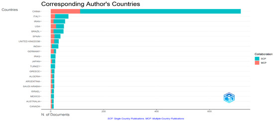 Other notable contributors include countries from the European Union, India, Brazil, Iran, and the United Kingdom, as shown in Figure 5, Figure 6 and Figure 7. These countries play critical roles in advancing desertification research through both domestic efforts and international collaborations. The leading global players—China, the United States, and Italy—are supported by significant contributions from European and Middle Eastern nations. The analysis of the corresponding authors further emphasizes the importance of international cooperation in advancing desertification research. Figure 7 illustrates the nature of collaboration in these studies. These results highlight the need for strengthened global partnerships to comprehensively address the environmental and socio-economic impacts of desertification.