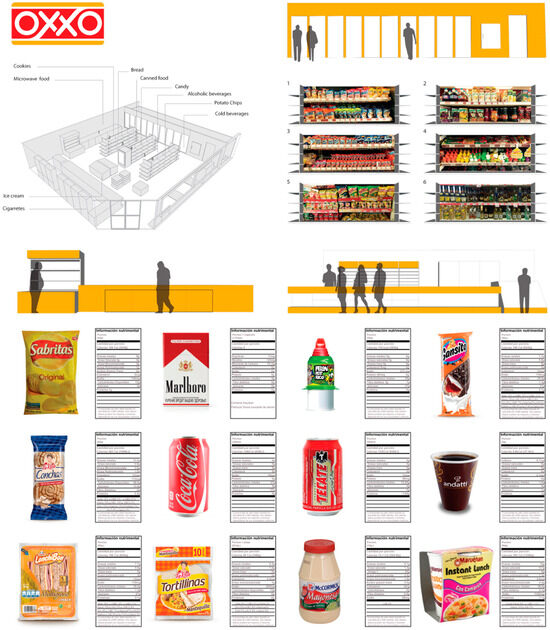 This image demonstrates the spatial distribution of fast-food chain OXXO convenience stores and the best-selling products along with their Nutrition Facts labels. In this sense, Figure 8 shows a sampling of the most available products, where foods with higher caloric and sugar content predominate. This could suggest that the most consumed foods are physically accessible in stores.
