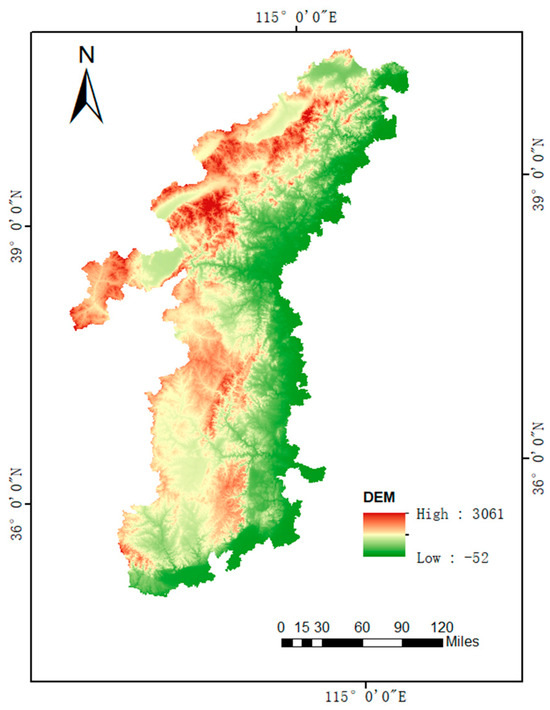 The Taihang Mountain area is positioned on the eastern fringe of China’s second topographic ladder. It is geographically located between latitudes 34°34′ N and 41°47′ N and longitudes 110°14′ E and 116°35′ E, spanning across the Beijing, Hebei, Shanxi, and Henan provinces(Figure 1). This expansive region covers 101 counties, covering a total area of 2.06 million hectares. Climatically, this region is characterized by a warm temperate semi-humid continental monsoon climate, with an average annual temperature around 10 °C and an average annual rainfall of 570 mm. The region’s topography features steep eastern slopes and gentler western slopes, transitioning from the Shanxi Plateau in the west to the plains in the east through various mountainous formations. Land use within the Taihang Mountains predominantly includes cropland, forest land, grassland, and built-up areas, collectively comprising over 90% of the total land. The primary forests of the region have been significantly depleted, with existing woodlands largely consisting of secondary forests derived from mountain closure and reforestation initiatives. Agricultural communities mainly occupy basins, loess hilly areas, and the eastern foothills’ hills and plains, extending to the mountainous farming regions. The Taihang Mountains boast notable landscape features such as prominent canyons and breathtaking scenery. The ecosystem services provided by this region are diverse, interwoven, and intricately linked, showcasing the complex and invaluable nature of the Taihang Mountains. This multifaceted ecological framework supports a myriad of ecosystem functions and services critical to both the local environment and the broader regional ecology.