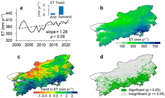 - Yang, Z.; Zhang, Q.; Hao, X.; Yue, P. Changes in Evapotranspiration Over Global Semiarid Regions 1984–2013. J. Geophys. Res. Atmos. 2019, 124, 2946–2963. [Google Scholar] [CrossRef]