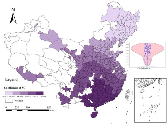 Figure 5. Regression coefficient of shrinking cities (SCs) on the amount of change in the degree of SPRCR.