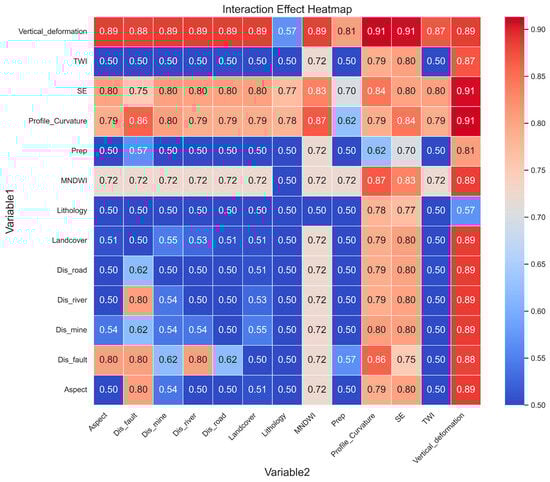 Moreover, landslide susceptibility is rarely influenced by a single factor; instead, interaction effects between variables play a critical role. For example, Zhang et al. [31] discovered that the intensity of landslides on slopes of the same gradient varies depending on land use, indicating the interplay between slope and land use. Additionally, Abbas et al. [32] revealed that land use significantly weakens the influence of distance to water sources on landslide susceptibility when these two factors act in combination. However, most ML-based LSM studies treat environmental factors as independent variables, failing to account for their combined effects, thereby limiting predictive accuracy.