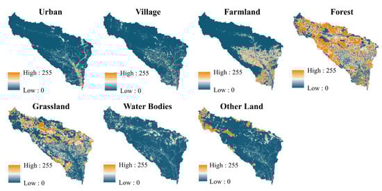 3.2.3. Conversion Probability Distributions for Each Land Use Type