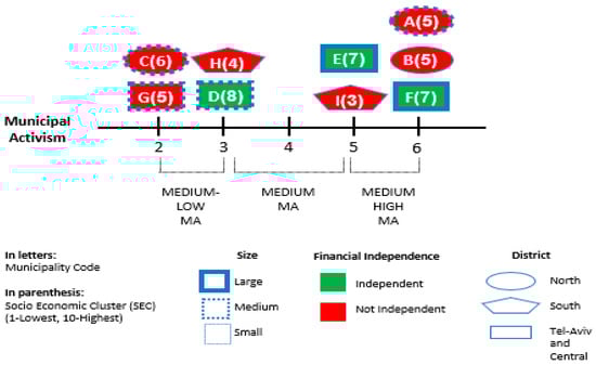 We allude mostly to research that deals with factors that impact decision making in local authorities in times of crisis and austerity on the one hand and studies dealing with municipal innovative initiatives on the other hand. As there are no previous findings regarding municipal activism, to the best of our knowledge we refer to these studies which provide the closest context similar to the context of issues involved in municipal activism. This involves both reacting to stressful conditions and initiating ways to deal with them. Some of these studies point to the role that socioeconomics play in such cases. Cepiku et al. [59] found that local resources are related to crisis management strategies of the municipalities. Shearmur and Piorier [60] for example found that the tendency of municipalities to engage in everyday municipal administrative innovation was positively related to size, metropolitan location, and socioeconomic resources.