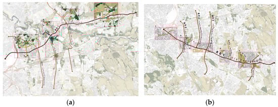 In-depth study of the STMP along Via Tiburtina (a) and Via Casilina (b) in Rome, which are radial roads (R01) that cross several streets and neighborhoods. To enhance tree coverage and strengthen the green network, interventions on individual streets must be complemented by broader actions in adjacent areas, following the hierarchical street system (R01, R02, R03, R04).