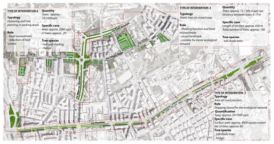 According to the adopted interpretative classification of streets based on the role of their trees in the urban landscape (see Section 2.3), strategies are tailored to different road types, categorized by the role of street trees as follows.