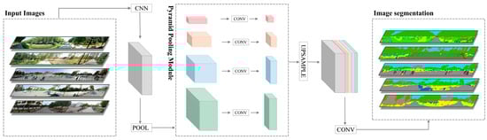 - Zhao, H.; Shi, J.; Qi, X.; Wang, X.; Jia, J. Pyramid Scene Parsing Network. In Proceedings of the 2017 IEEE Conference on Computer Vision and Pattern Recognition (CVPR), Honolulu, HI, USA, 21–26 July 2017; IEEE: Piscataway, NJ, USA; pp. 6230–6239. [Google Scholar]