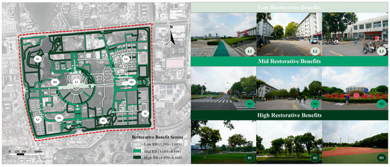 - Ma, H.; Xu, Q.; Zhang, Y. High or Low? Exploring the Restorative Effects of Visual Levels on Campus Spaces Using Machine Learning and Street View Imagery. Urban For. Urban Green. 2023, 88, 128087. [Google Scholar] [CrossRef]