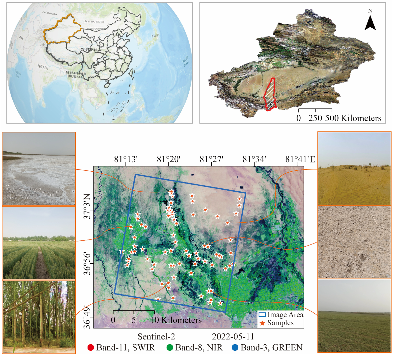 - Muhetaer, N.; Nurmemet, I.; Abulaiti, A.; Xiao, S.; Zhao, J. An Efficient Approach for Inverting the Soil Salinity in Keriya Oasis, Northwestern China, Based on the Optical-Radar Feature-Space Model. Sensors 2022, 22, 7226. [Google Scholar] [CrossRef]