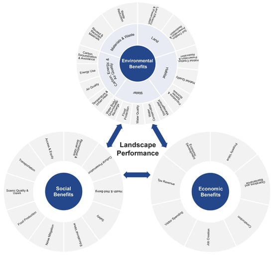 - Luo, Y.; Li, M.-H. A Study of Landscape Performance: Do Social, Economic and Environmental Benefits Always Complement Each Other? Landsc. Archit. Front. 2014, 2, 42–56. [Google Scholar]